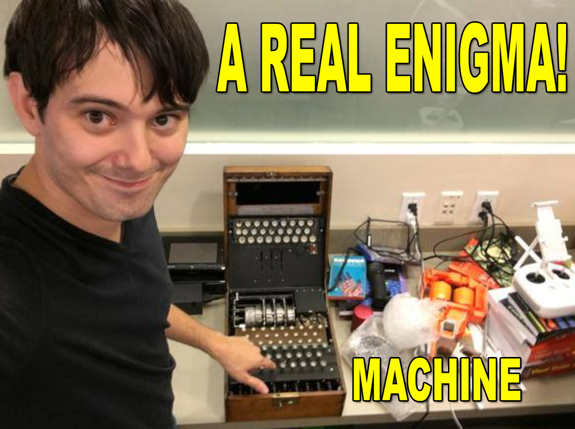 But the real Enigma is Shkreli himself! He recently tweeted: “New Enigma machine for our office. Perhaps it will help us crack the code in drug development.”