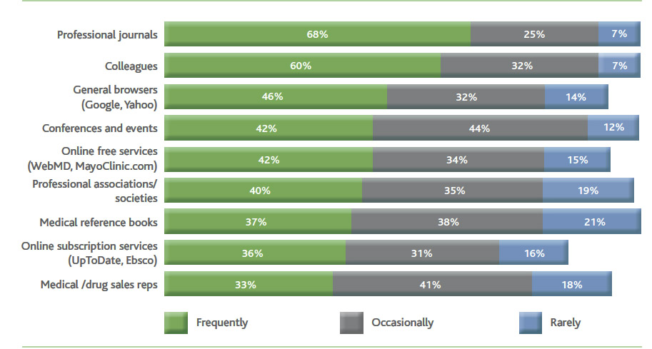 This study asked physicians: “How often do you use the following sources to gain information used to diagnose, treat and care for patients?” The results are shown in the following chart: