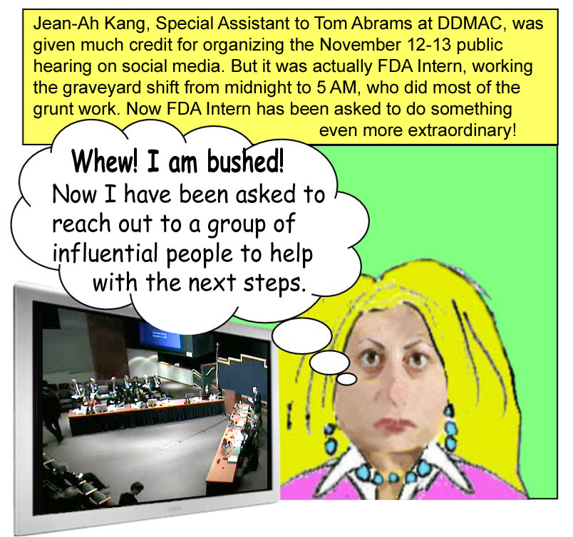 I learned that FDA Intern, strange visitor from an Ivy League school who came to FDA with powers and ability far beyond those of Janet Woodcock or even former FDA commish Andy von Eschenbach, is also on a quest to determine the next steps!