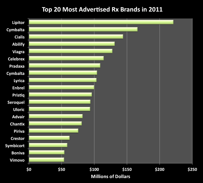 I did a little exercise to predict that DTC spending in 2012 will be down by over 3% compared to 2011 solely due to the drop in Lipitor advertising. Here’s how I came up with that estimate.