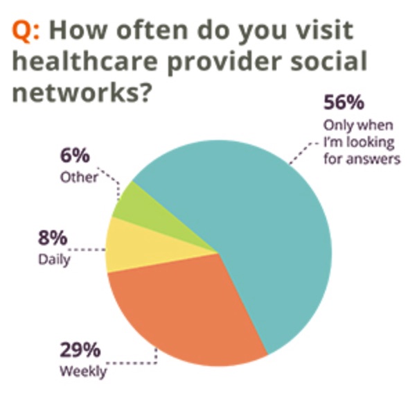The mms survey cited above asked physicians how often they visited healthcare provider social networks and found that only 8% did so on a daily basis (see chart on right).