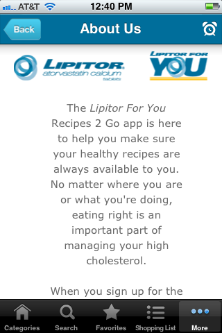 I just learned that Pfizer has developed an iPhone/iPad app that promotes LIPITOR, the drug company’s off-patent lipid-lowering drug. The app is “Recipes 2 Go.” It is the first pharmaceutical app that I know of that promotes a prescription drug.