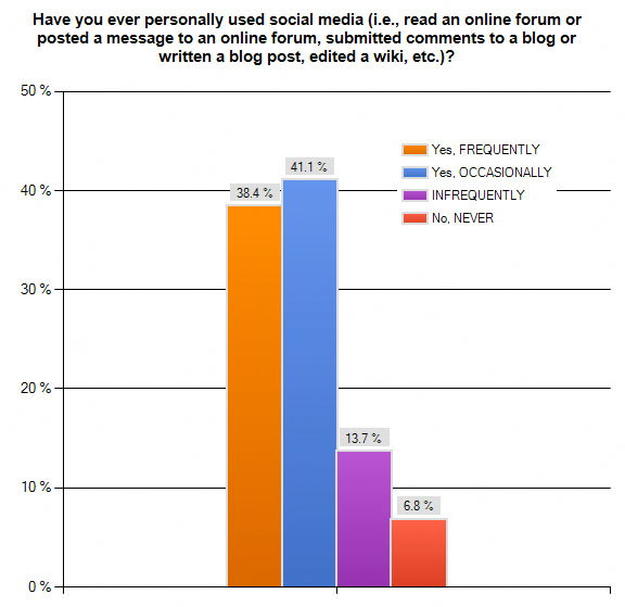 In my “Rate Your Social Media Readiness Self-Assessment Survey” I asked respondents how often they used social media applications. The pharma respondents answered the question as shown in the following chart:
