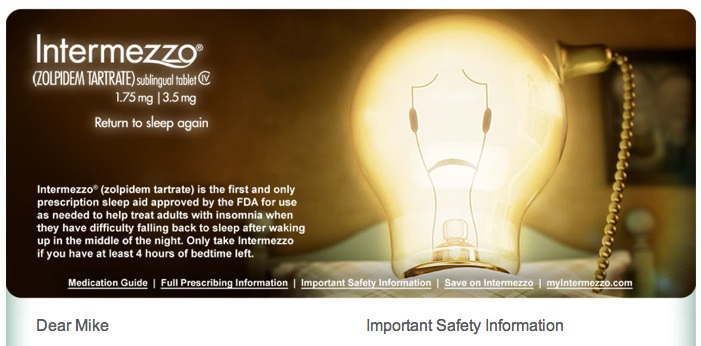 I haven’t seen the 90-second TV ad yet, but as I mentioned previously (here), I received Intermezzo spam e-mails. Here’s part of one e-mail message that I received: